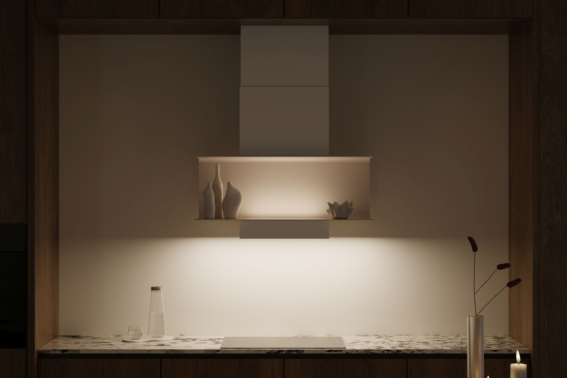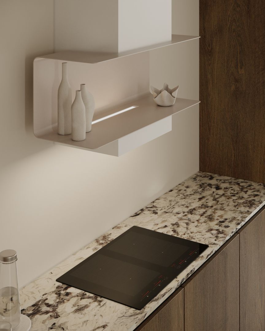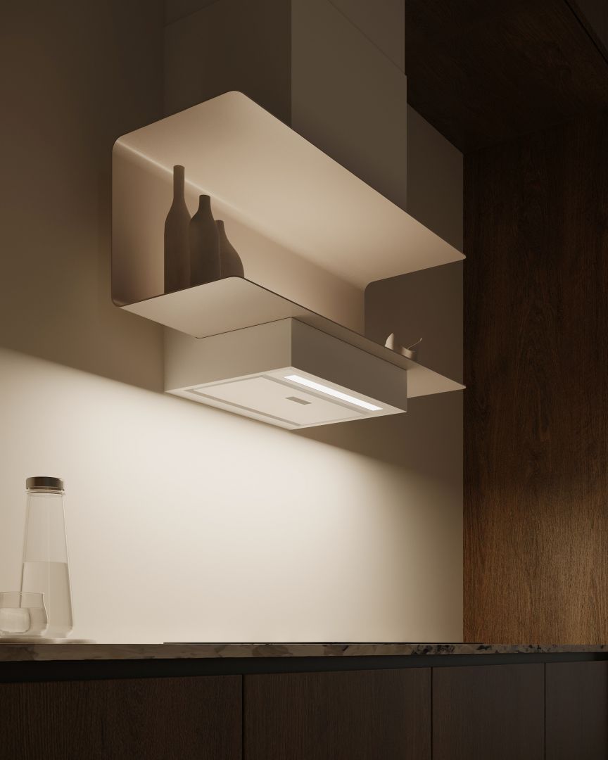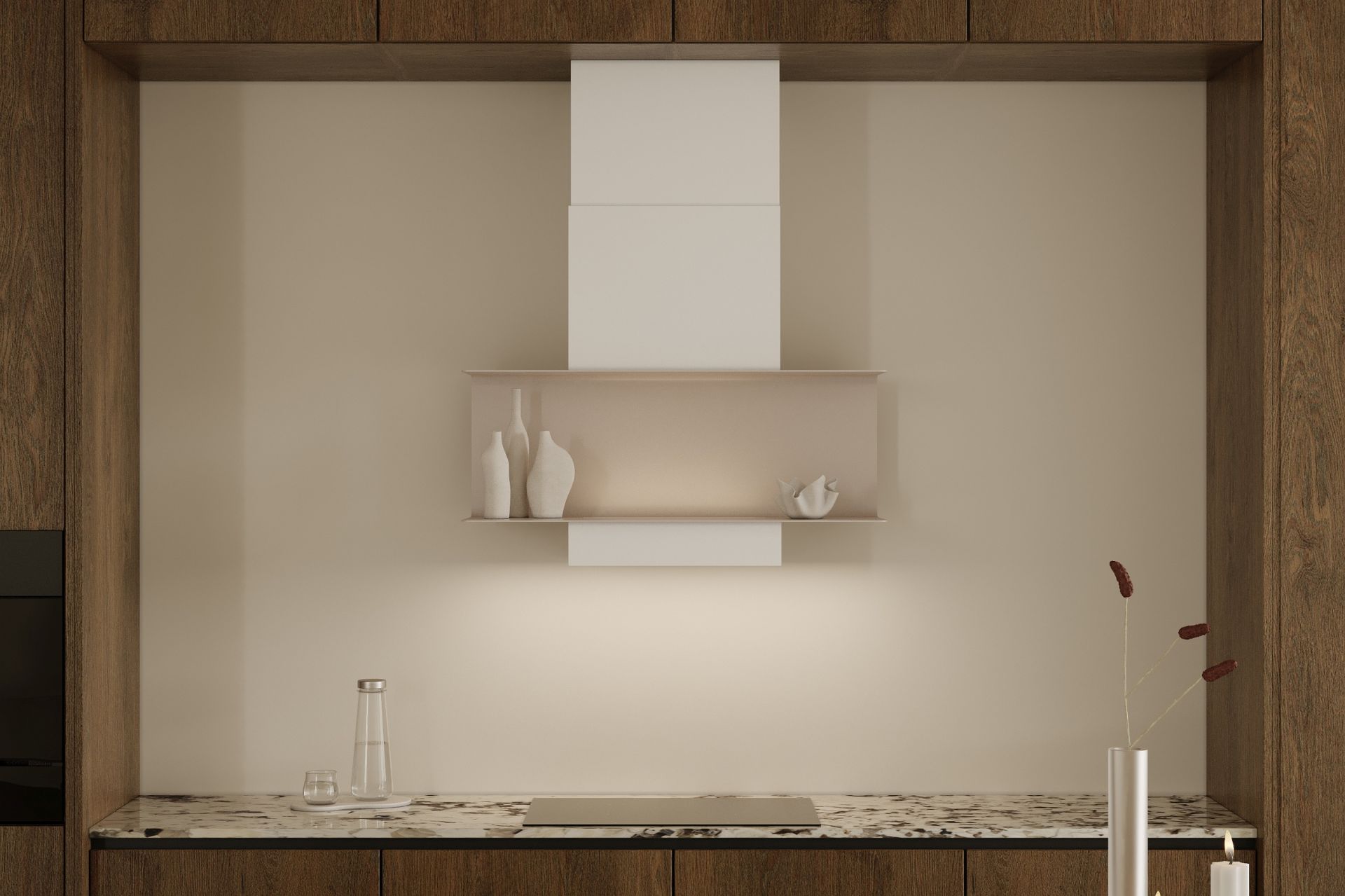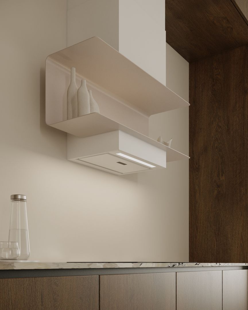 Вытяжка C-Shelf – это отличный выбор для современных кухонь, вдохновленных минимализмом, индустриальным стилем и скандинавским дизайном. Матовое покрытие и элегантная полка гармонируют с архитектурным бетоном, натуральным деревом или мрамором. Отлично подойдет для открытых просторов, где кухня становится центром дома. Это идеальная модель для дизайнеров интерьеров, желающих подчеркнуть легкость, гармонию и современный характер кухни. C-Shelf – это не просто вытяжка, это дизайнерское произведение искусства.